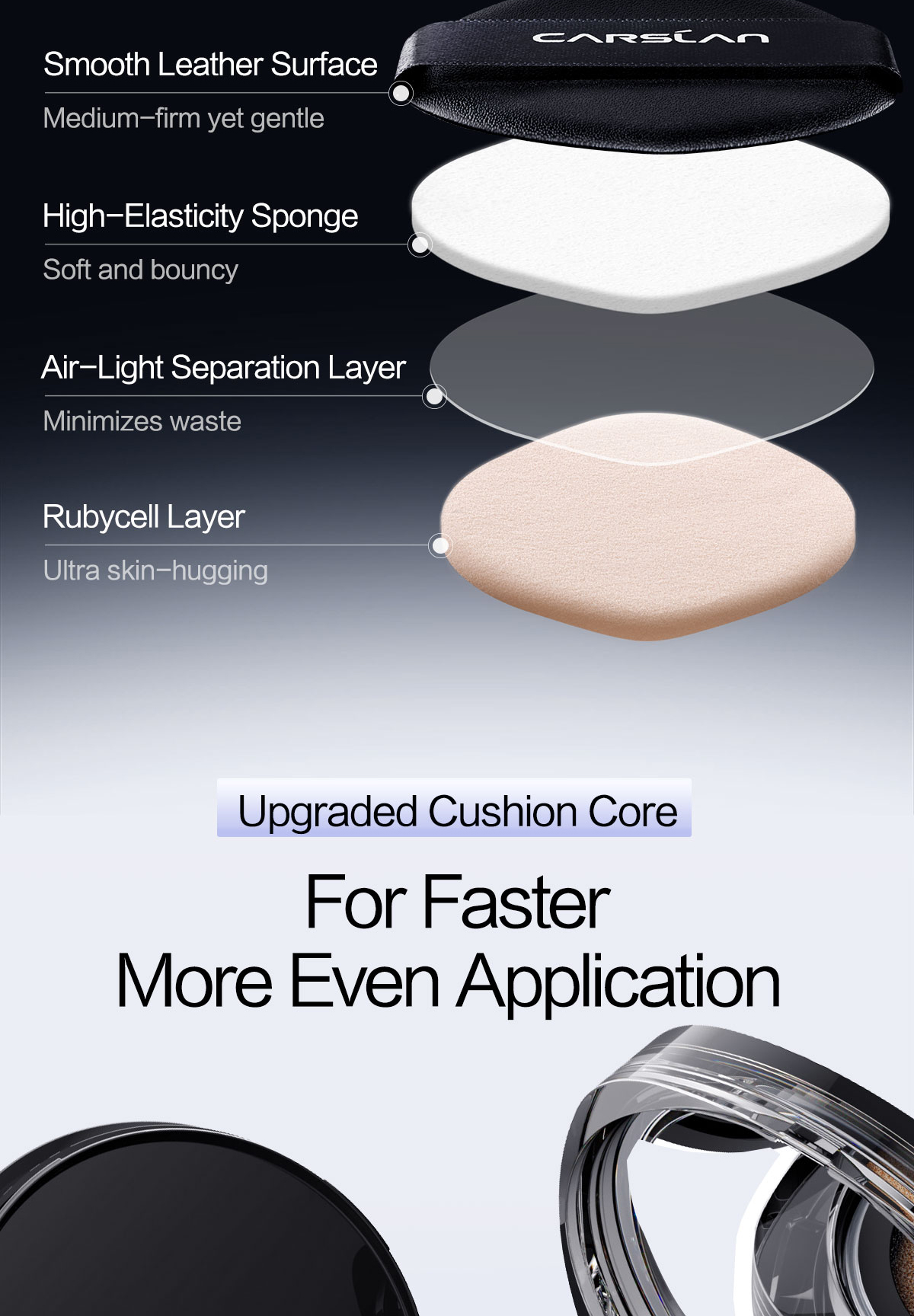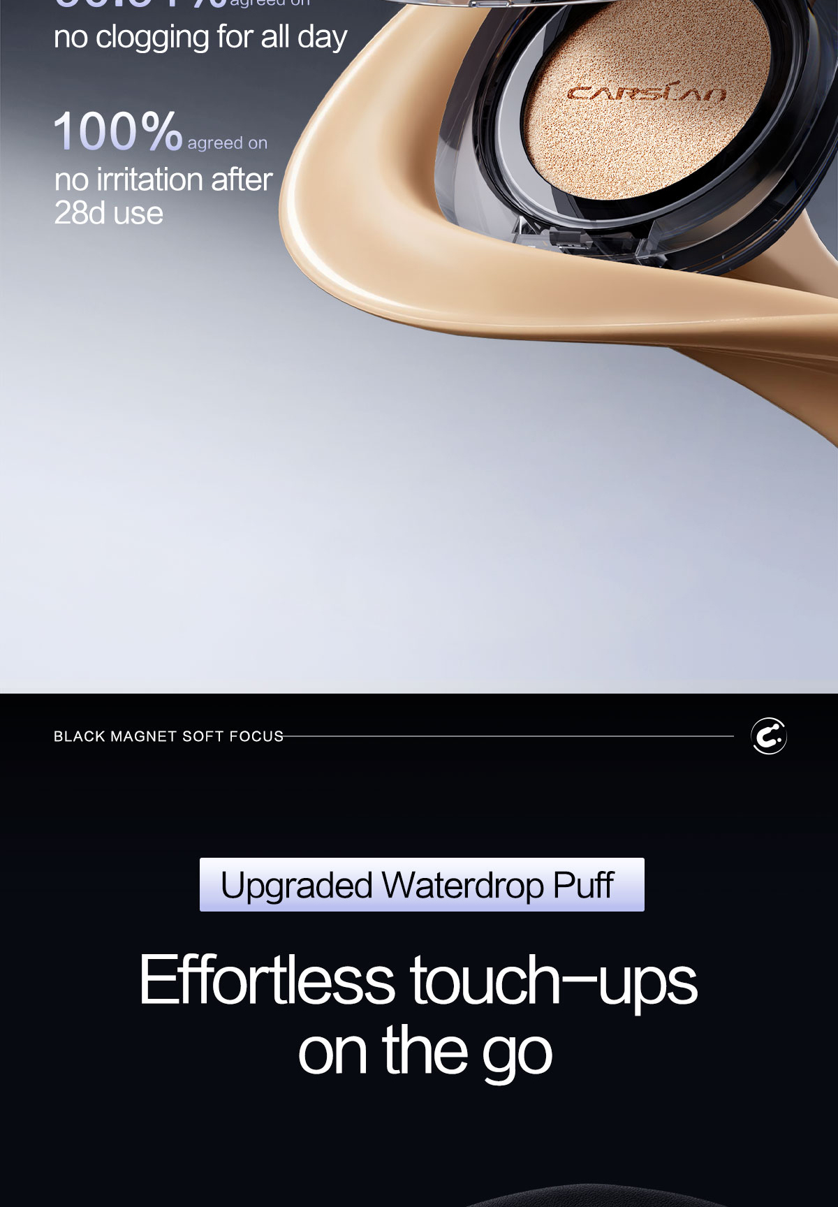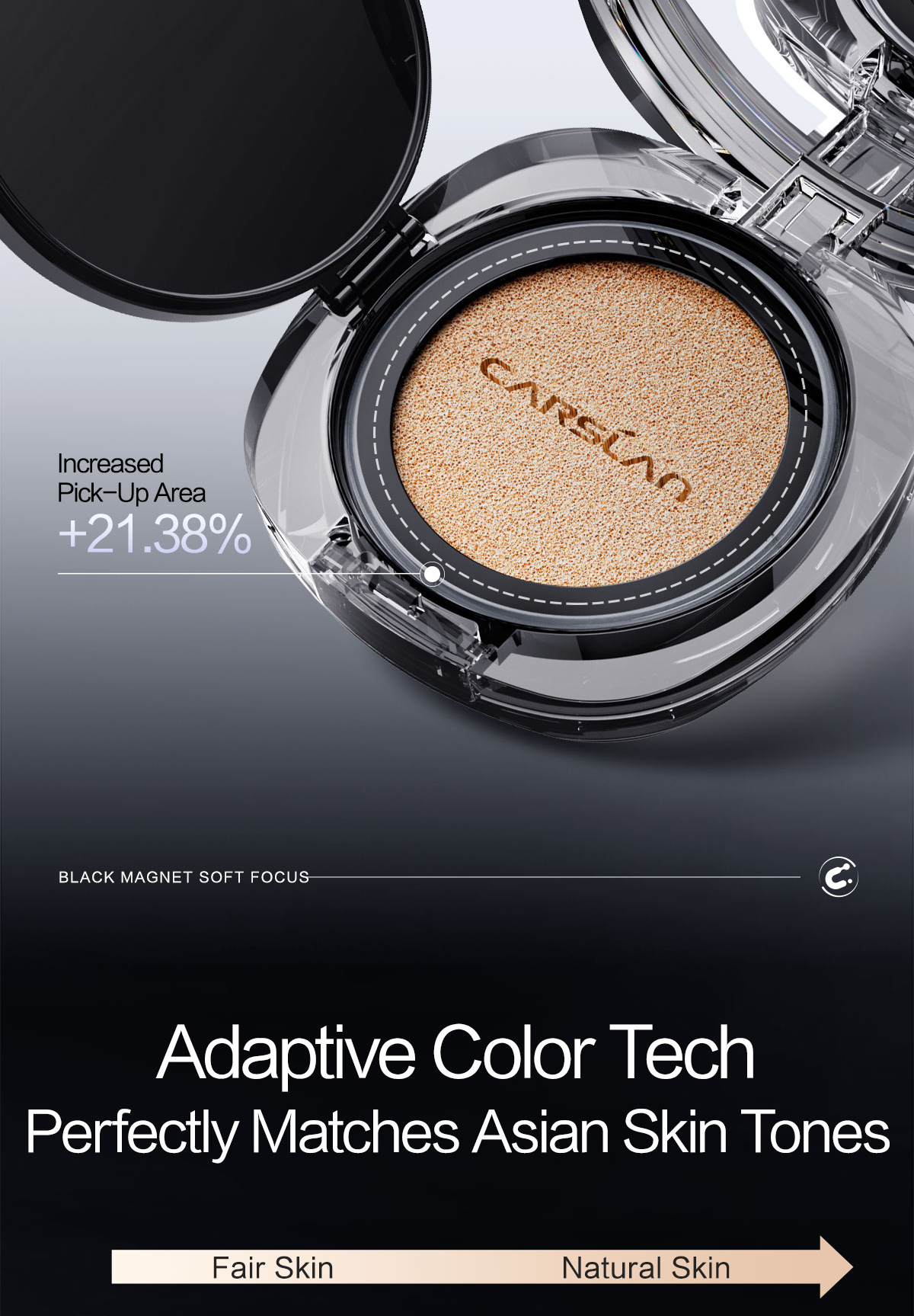 [2.0]CARSLAN Black Magnet Cushion Foundation - Full Buildable Coverage, Moisturizing, Lightweight, 16H Long-Lasting Glow Looking, Refill Included, 13g/0.46Oz