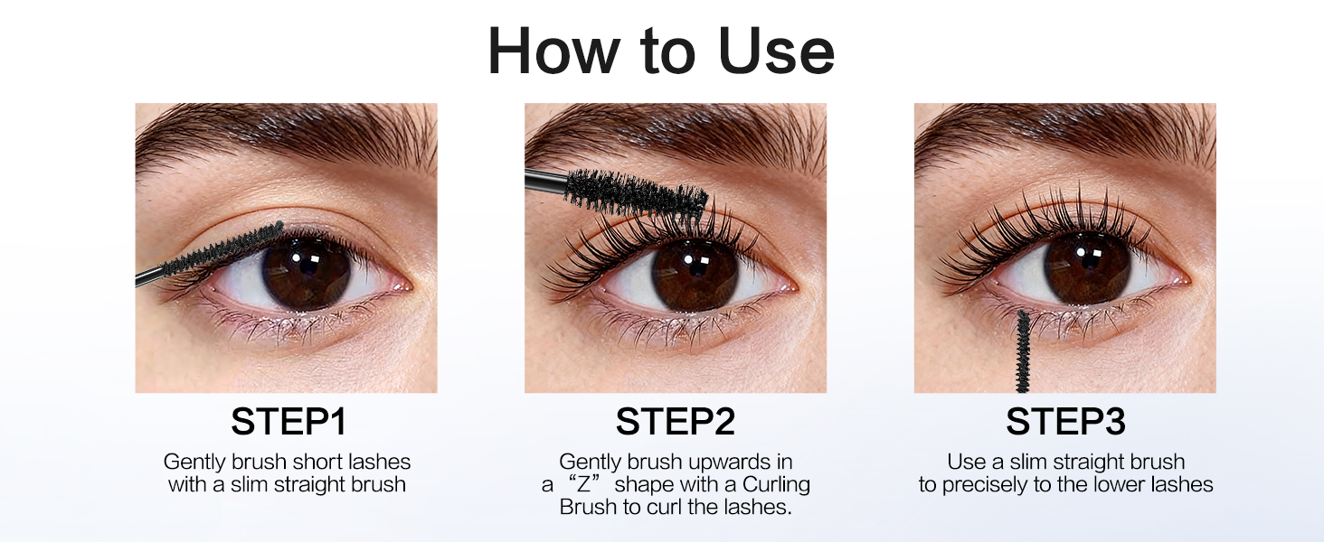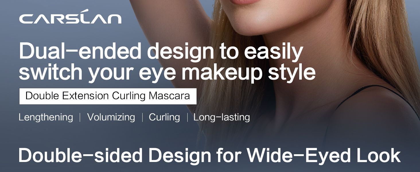 CARSLAN Double Extension Curling Mascara, Dual Brush Design for Lengthening & Curling for All Lashes, Natural Volume, Quick-Dry Smudge-Proof All Day Wear, Black, 0.18 Fl Oz & 0.16 Fl Oz