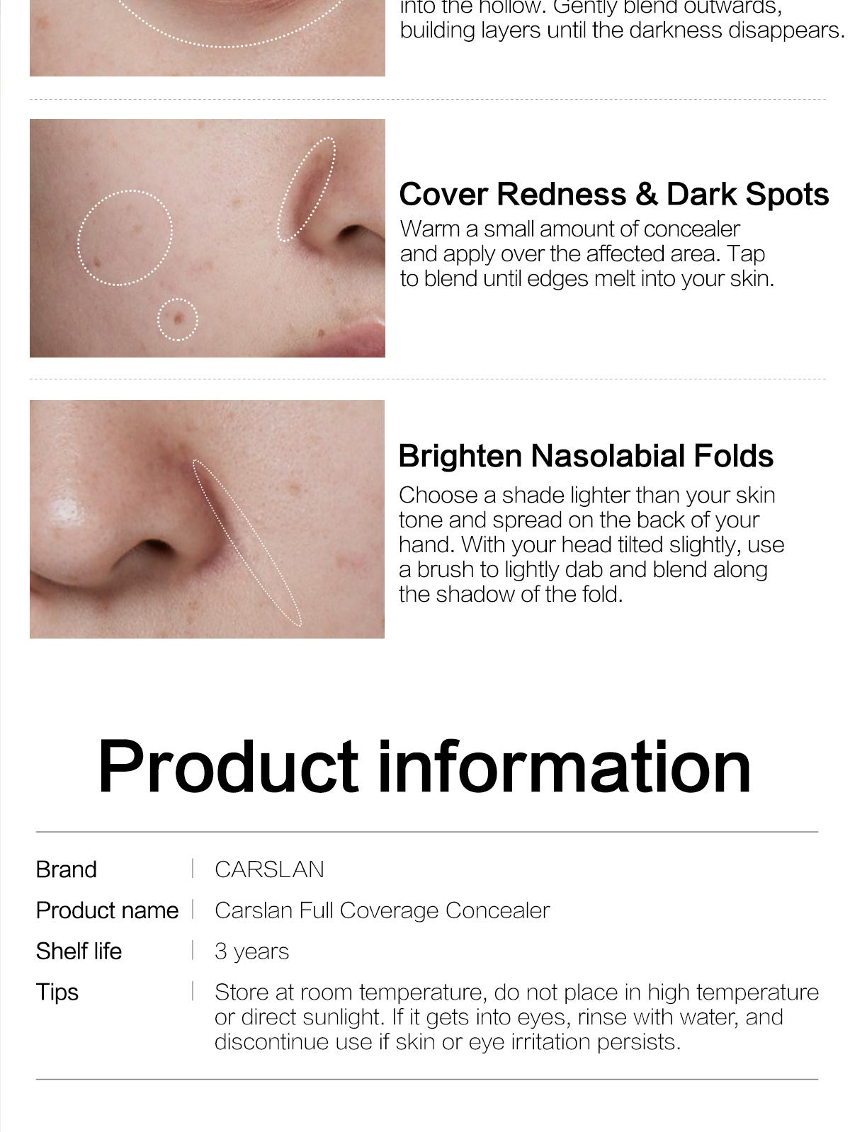 CARSLAN Full Coverage Concealer Lightweight High Coverage Flawless Makeup CoversBlemishes & Under-Eye Circles Dark Circles Redness Brightening